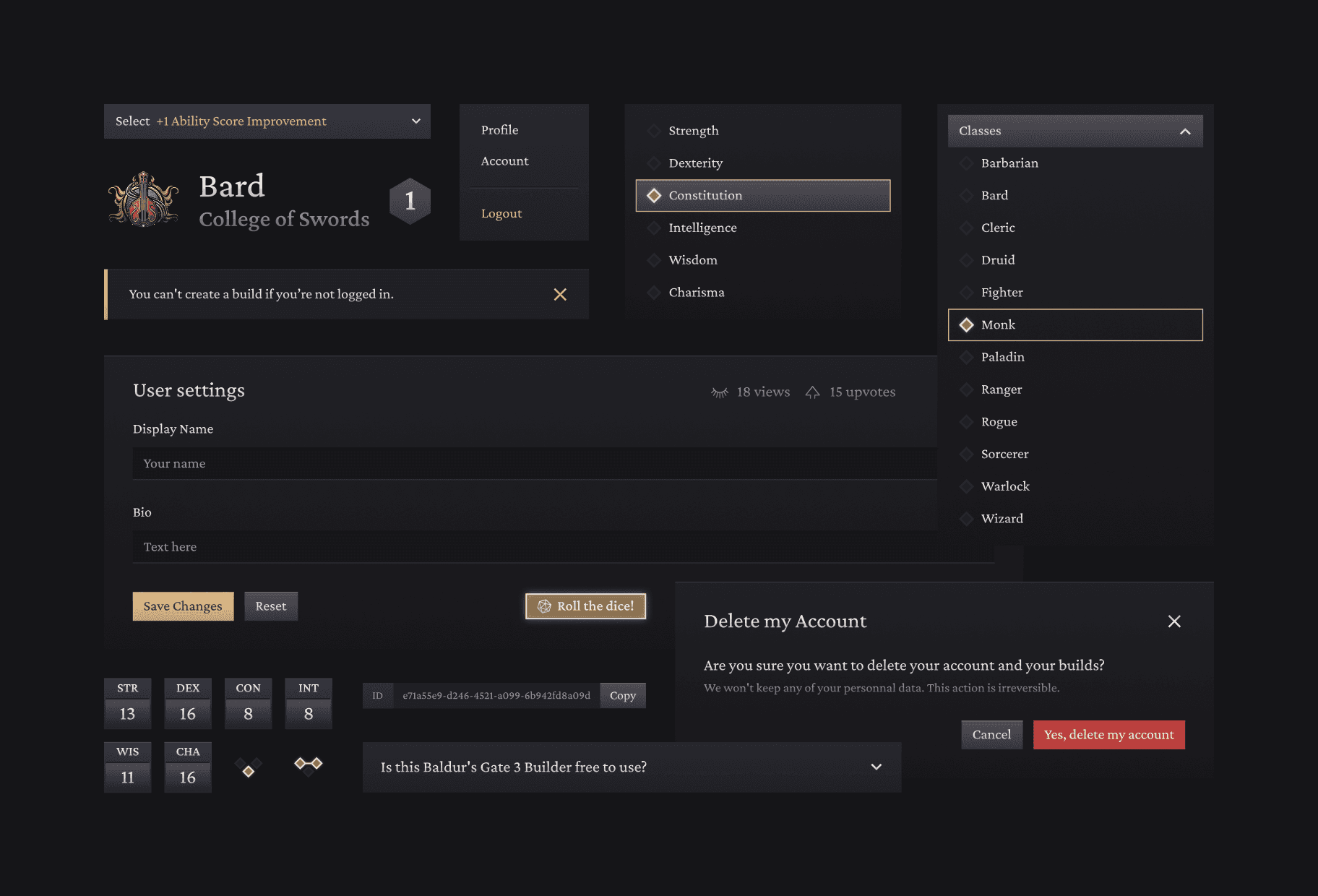 Web-based Baldur's Gate 3 character builder