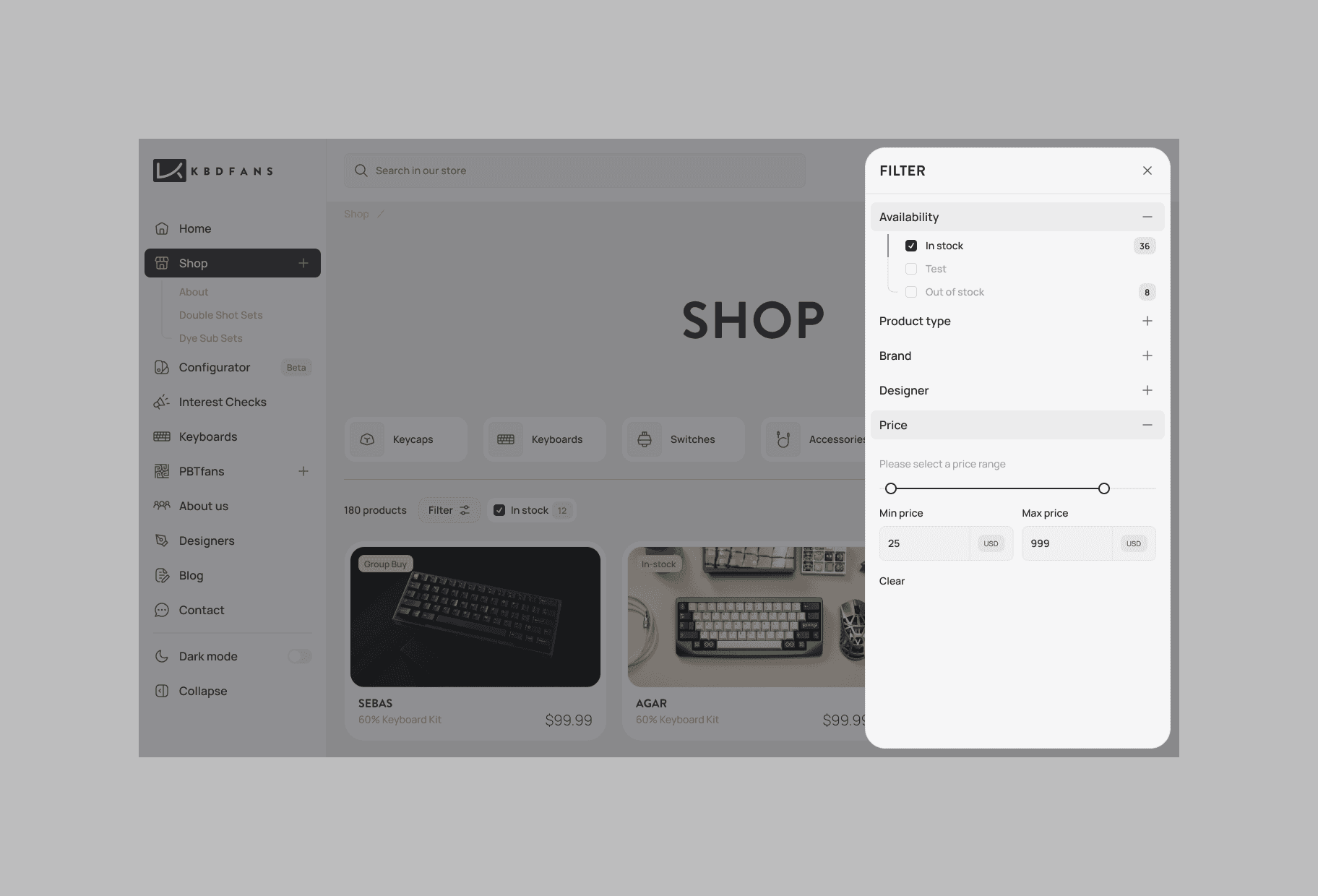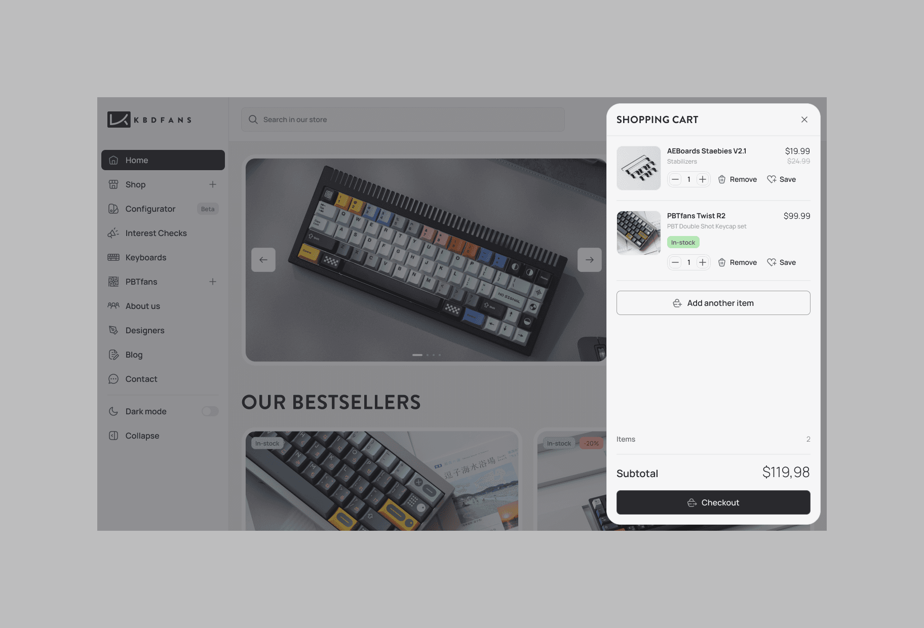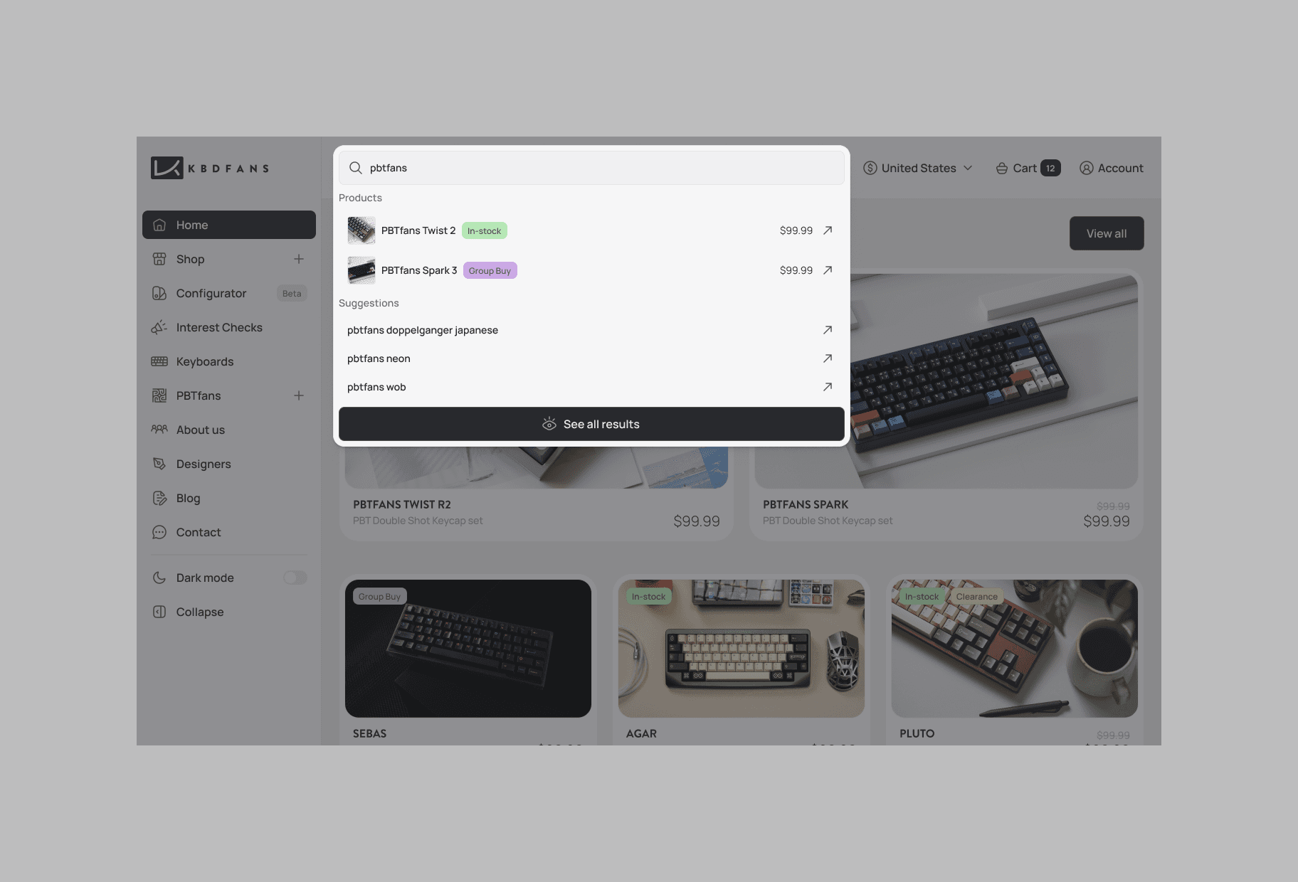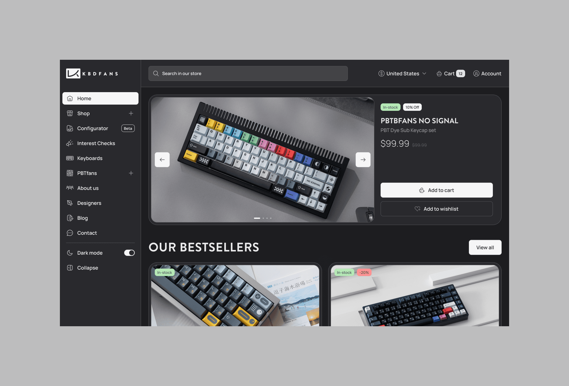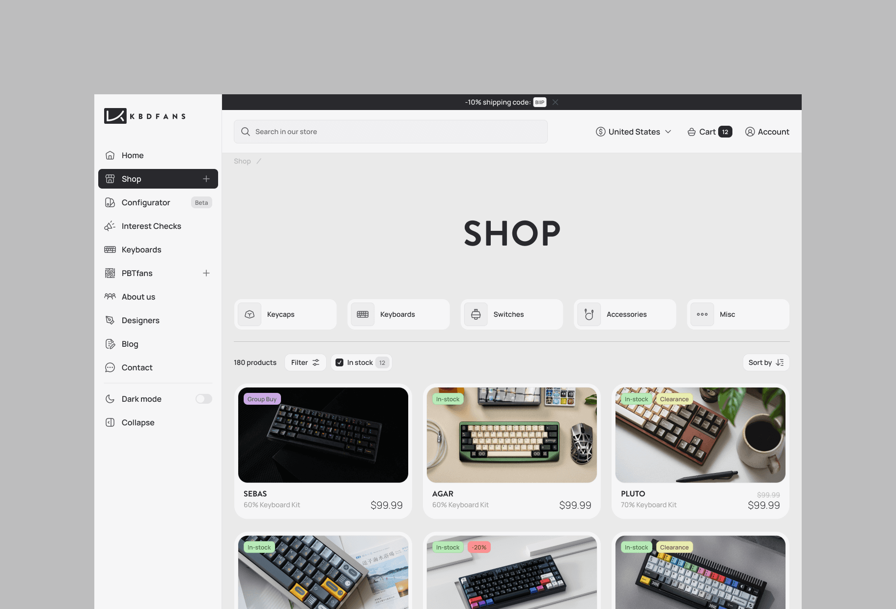 Complete redesign for KBDfans, one of the world leaders in custom mechanical keyboard distribution, keycaps and specialized components. This Chinese platform has established itself as an essential reference for mechanical keyboard enthusiasts, offering a comprehensive catalog ranging from DIY kits to premium keycaps through switches and technical accessories.