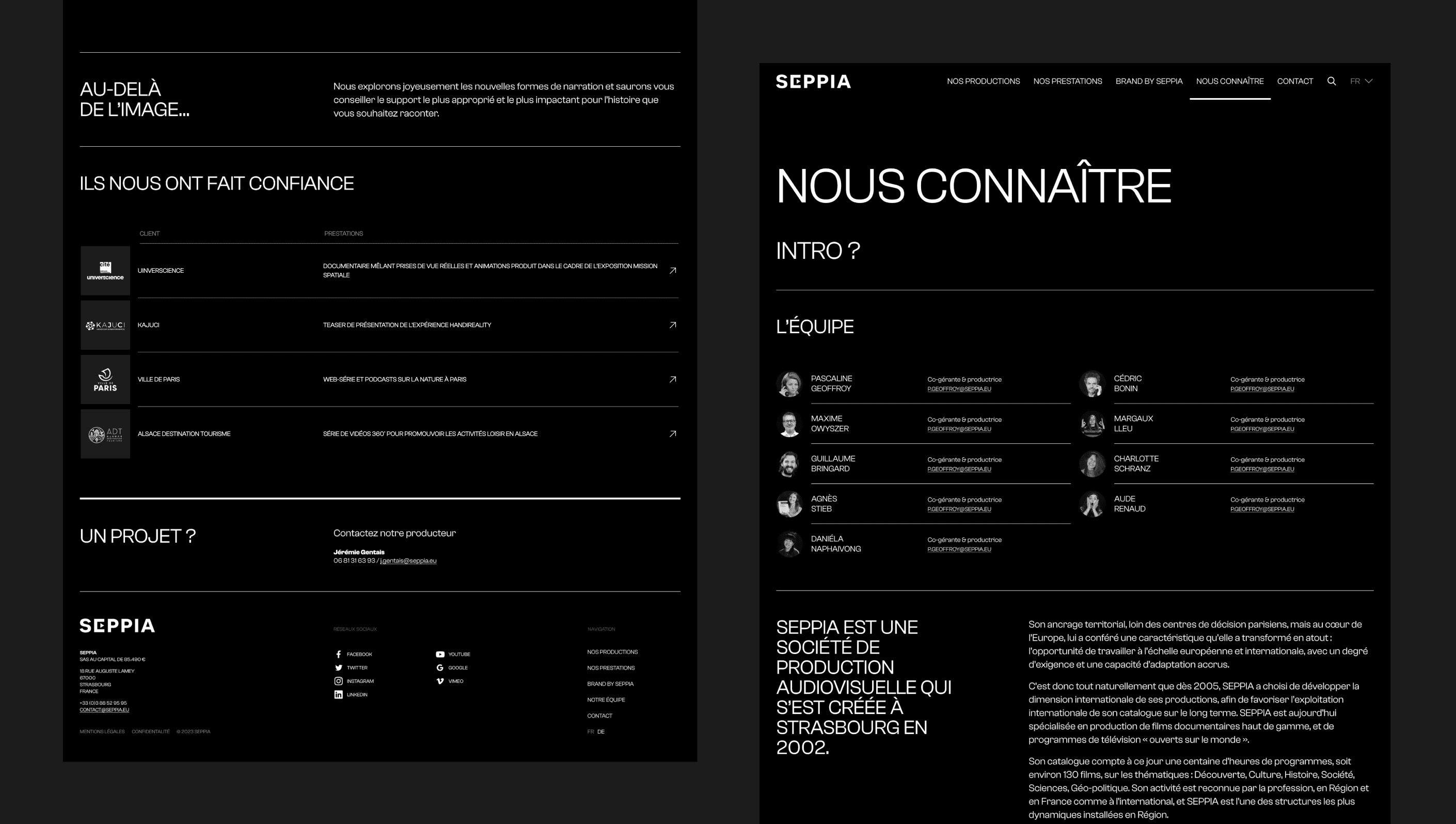 Corporate interface for this Strasbourg-based audiovisual production company that positions itself as a "collective of professionals, partner in high-end creations for all media". The design favors a modern institutional approach that reflects technical expertise while maintaining a strong creative and European dimension.