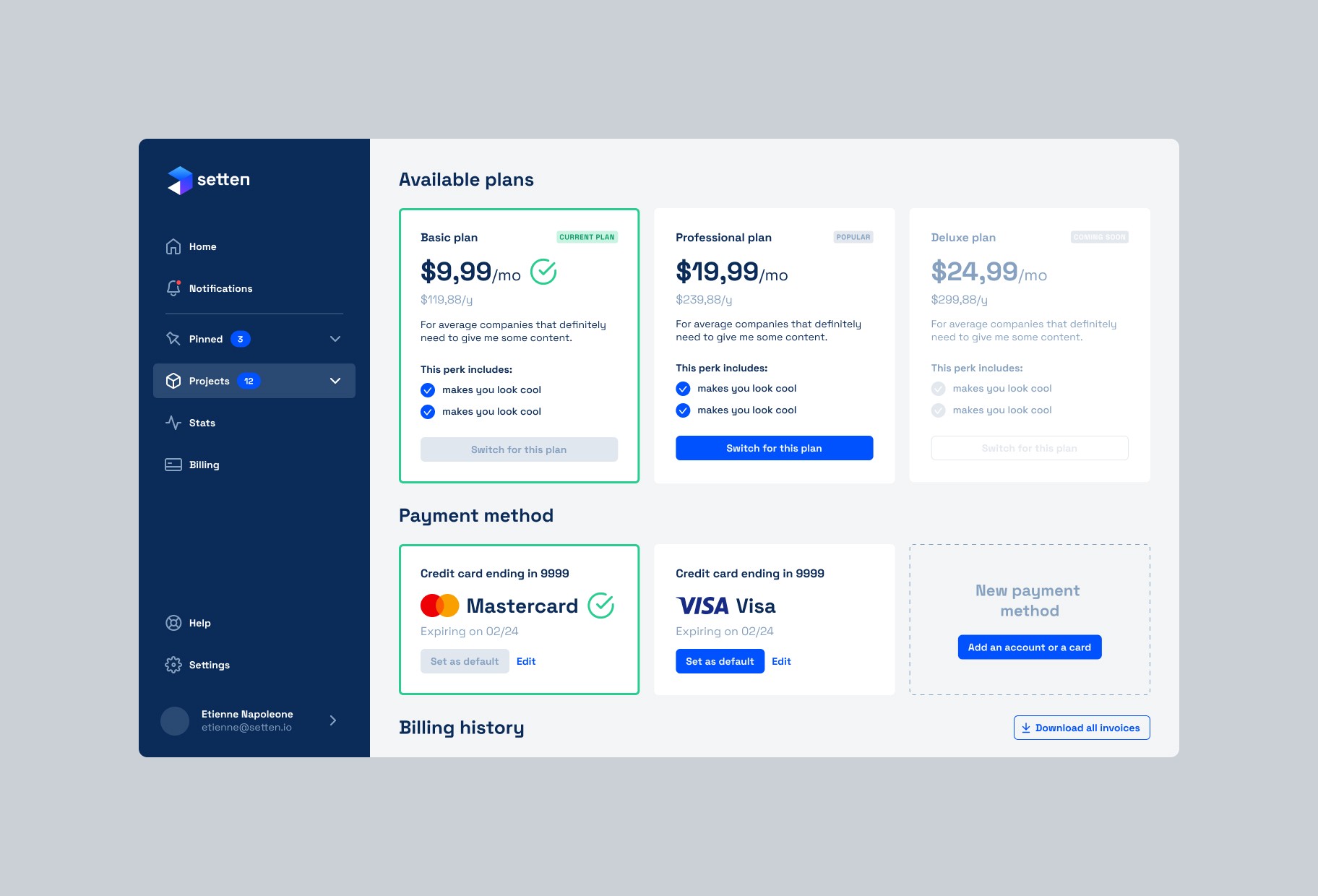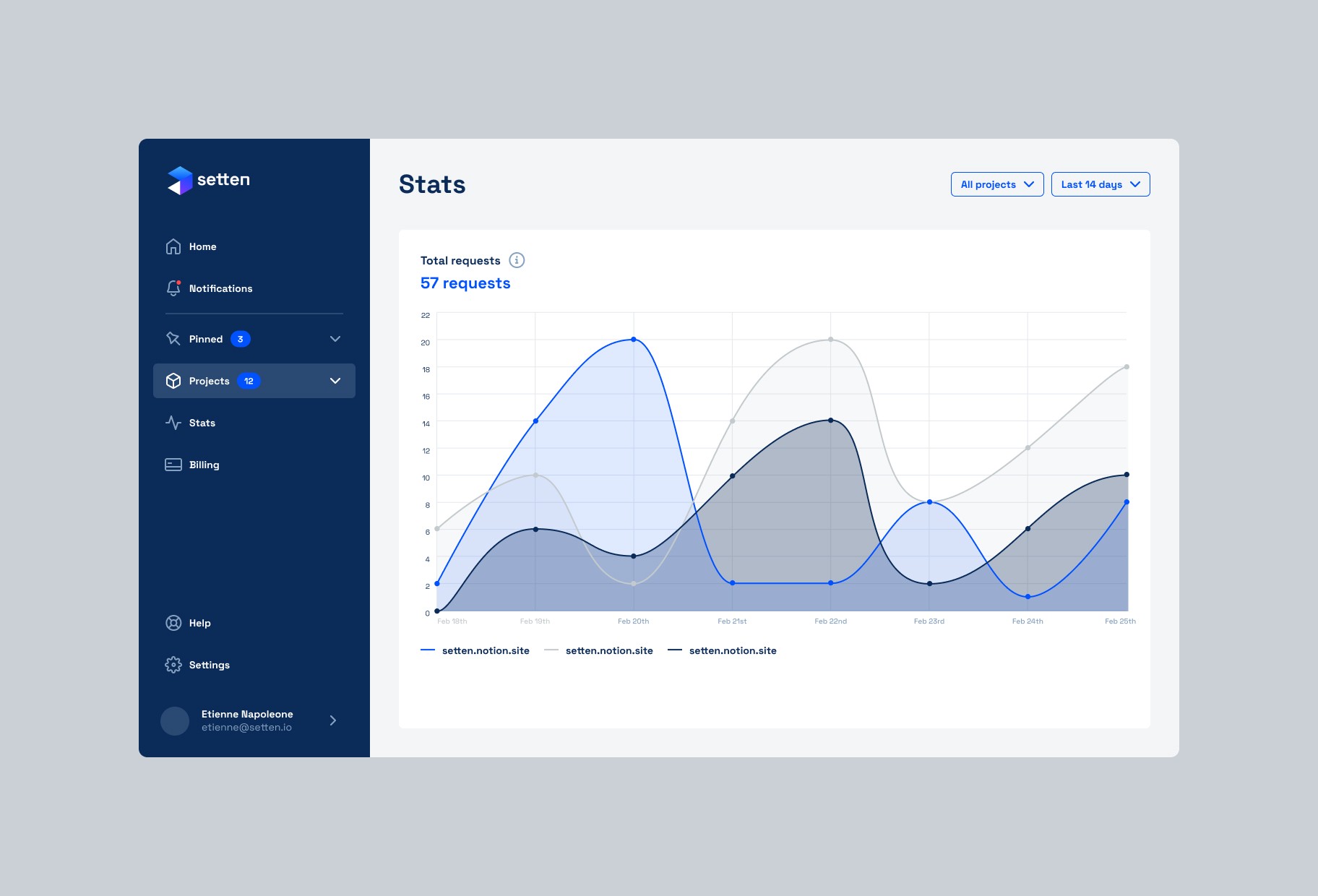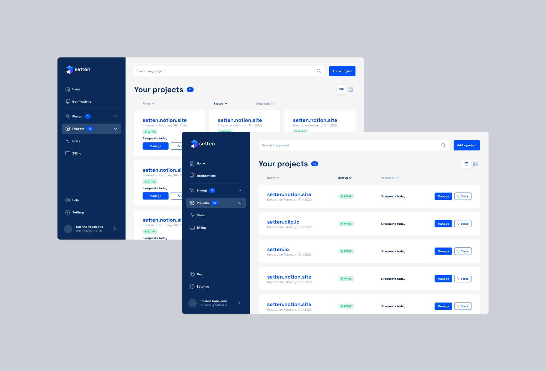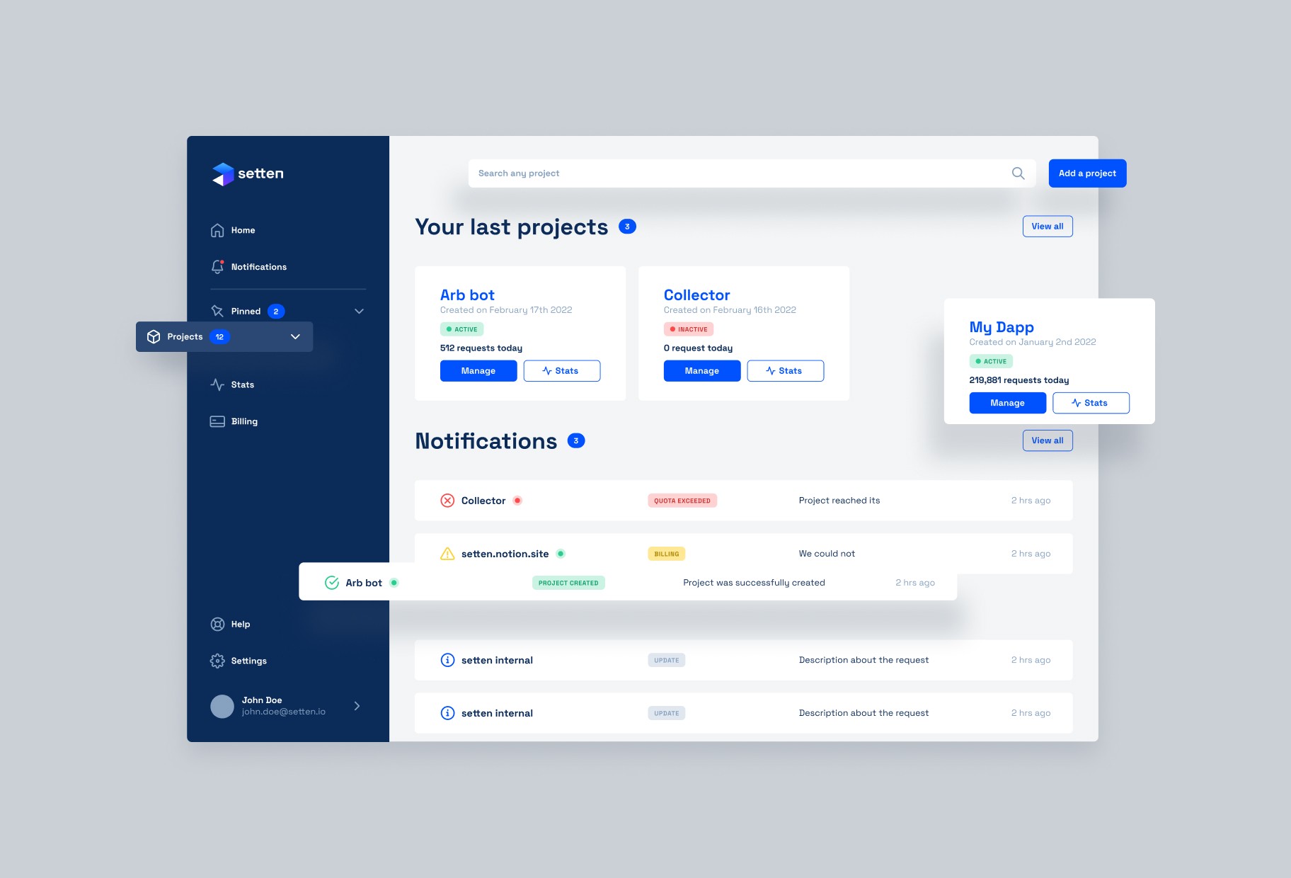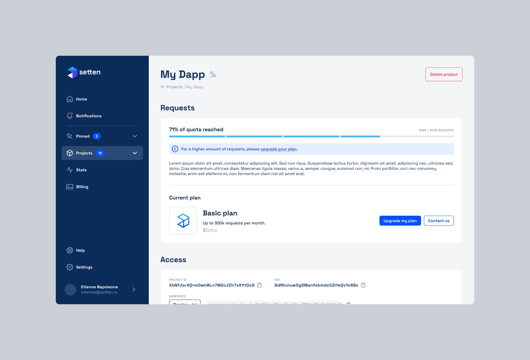 Setten is a SaaS interface for this "Blockchain as a Service" platform that handles the IT infrastructure needed by blockchain projects. The design favors a modern and functional dashboard approach that translates technical complexity into accessible user experience for developers and blockchain teams.
