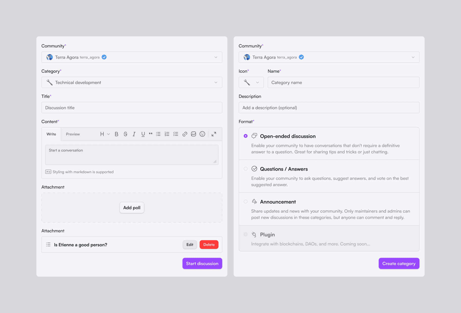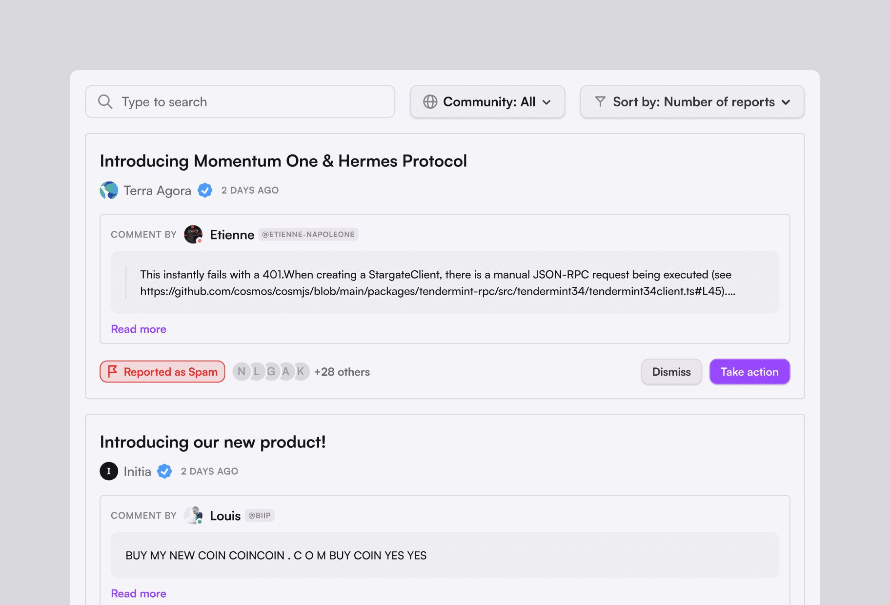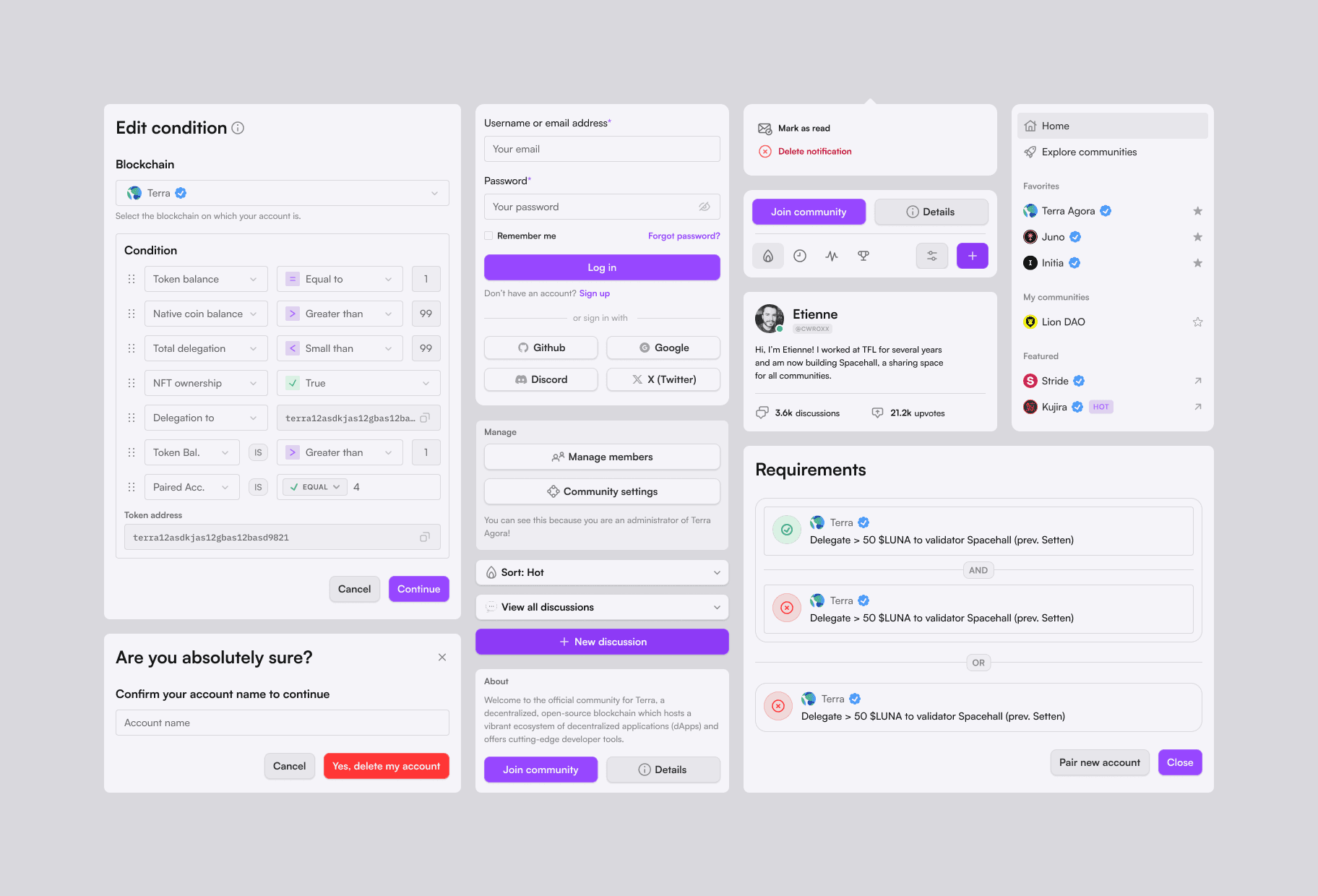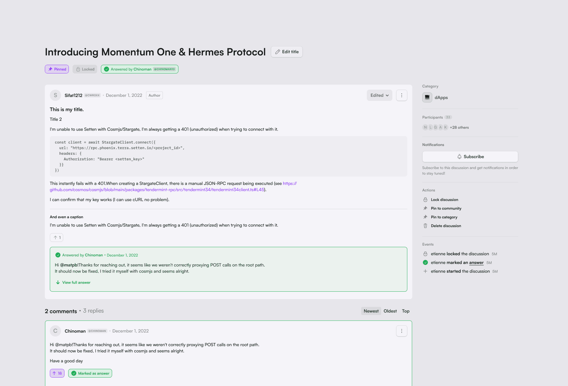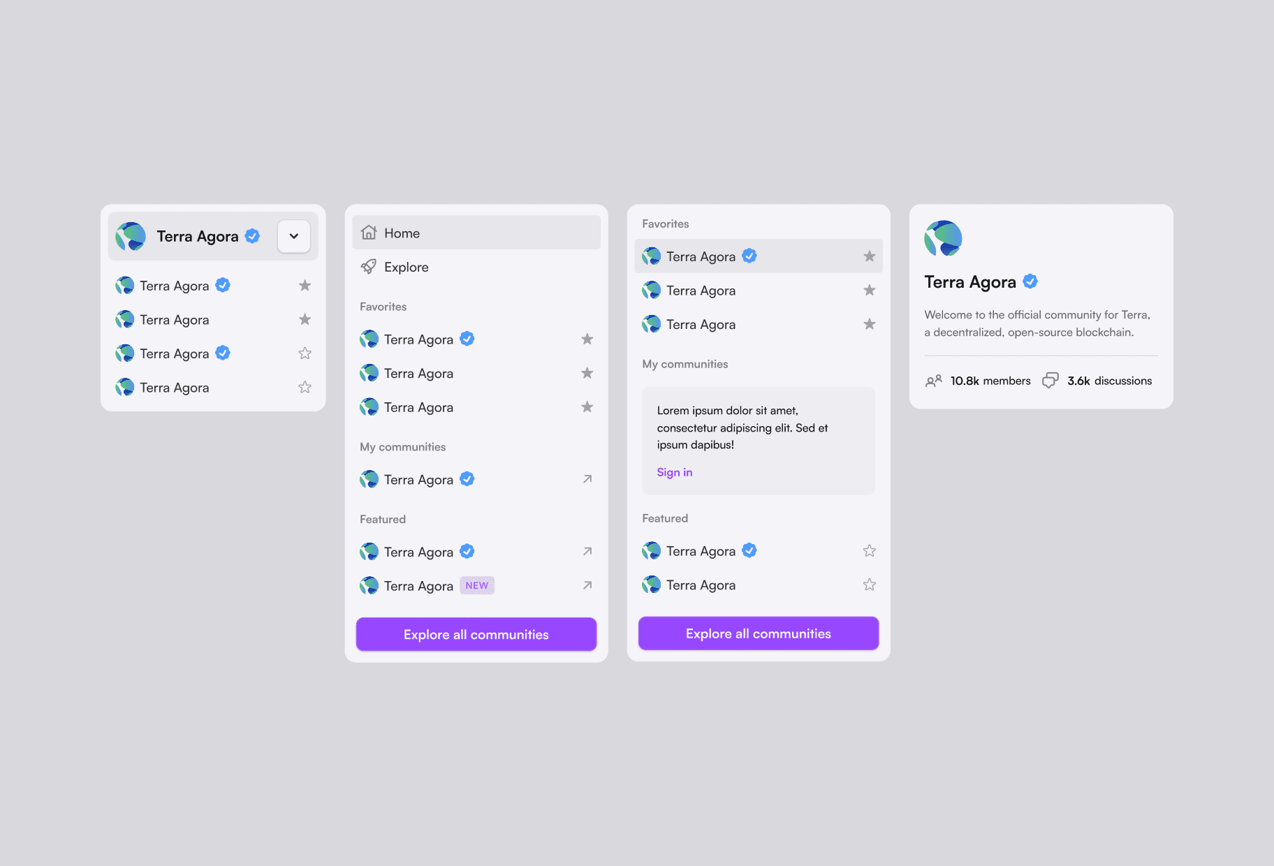 Spacehall is a Web 3 communities social network which features a modern interface designed for blockchain community exchanges. The design system employs a clean, functional approach that prioritizes readability and intuitive navigation for managing complex technical discussions.
